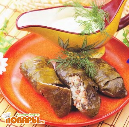 Свежие виноградные листья следует ошпарить кипятком, а соленые слегка припустить.