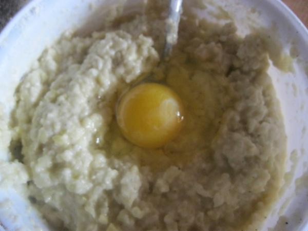 В получившийся фарш вбить яйцо, добавить растительное масло, посолить, поперчить и хорошо перемешать.