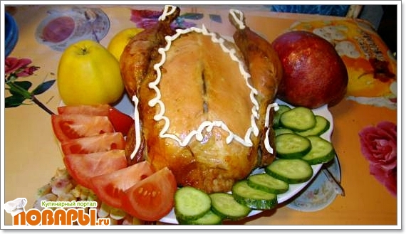 Фаршированная курочка гречкой и яблоками