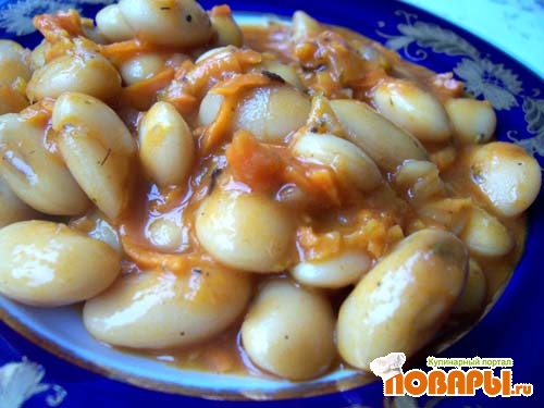 Протушить соус до загустения и залить фасоль. Дать фасоли протушиться 5-10 минут. Подавать в горячем виде.