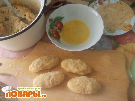 Сформируйте удлиненные (или сферической формы) котлеты и обваляйте их сначала в сухарях, а потом в яйце. Обжарьте на огне, больше среднего.