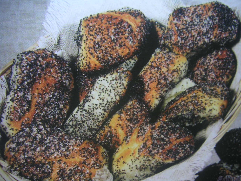 В это время подготовьте чашу с маком сахаром(перемешать),в другую посуду растительное масло. На стол насыпьте муку,выложите тесто, раскатайте, сверните рулетом, нарезайте кусочками с грецкий орех, и обмакивайте сначала в масло, затем в сахар с маком.