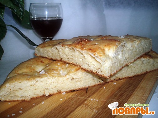 - Посыпать противень кукурузной мукой, выложить лепешку и выпекать в предварительно нагретой до 210 С духовке 15 минут ( до золотистого цвета)