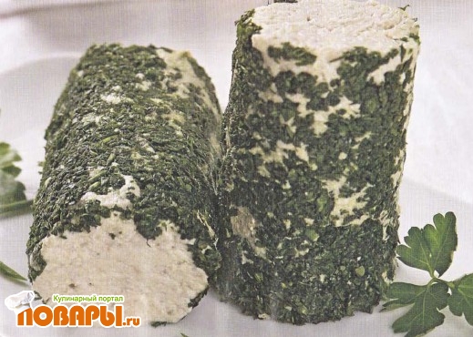 Подготовленные ингредиенты соедините, добавьте размягченное масло, тщательно перемешайте. Сформуйте небольшие цилиндрики и обваляйте их в рубленой зелени.