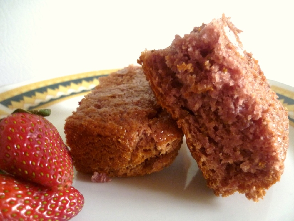 Смешать ложкой в миске все сухие ингредиенты. В блендере смешать фруктовую мякоть (у меня клубника) с йогуртом или кефиром.