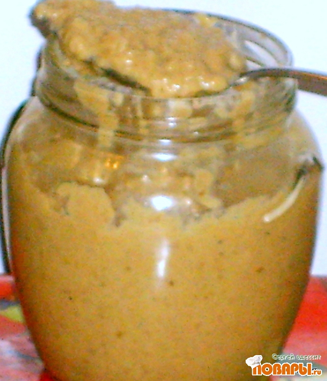 Точно также готовлю и из айвы. Пропорции примерно соблюдаю. Вкус абсолютно другой. Но горчица из айвы закончилась, а айвы зимой не купить. Поэтому из яблок.