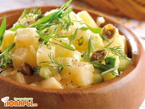 Совет Замените сливки на растительное масло (5–6 ст. л.), слегка обжарьте на нем только лук и каперсы на сковороде, остудите, добавьте туда кубики отварного картофеля и мелко нарезанные соленые или маринованные огурцы вместо свежих, приправьте, перемешайте, посыпьте зеленью – и нетрадиционный «веганский» вариант салата без продуктов животного происхождения готов!