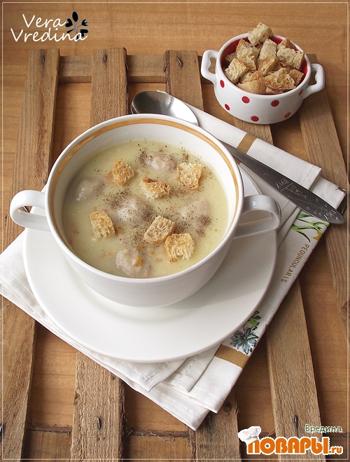 Гороховый суп-пюре с куриными фрикадельками