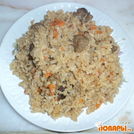 Накрываем крышкой, ставим на медленный огонь и тушим, пока рис не впитает всю воду, примерно 15-20 минут.