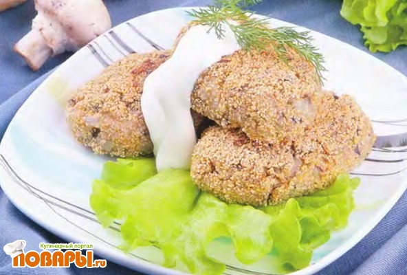 К готовым горячим котлеткам подают сметанный или грибной соус.