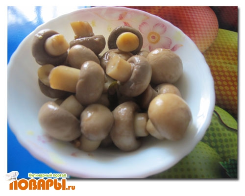 Грибы помыть, отварить в подсоленной воде в течении 5 минут. Затем слить воду и залить их маринадом. Проварить в маринаде в течении 3-5 минут (в кипящем). Снять с огня, остудить до комнатной температуры, перелить в баночку, закрыть плотно крышкой, оставить на неделю в прохладном месте.