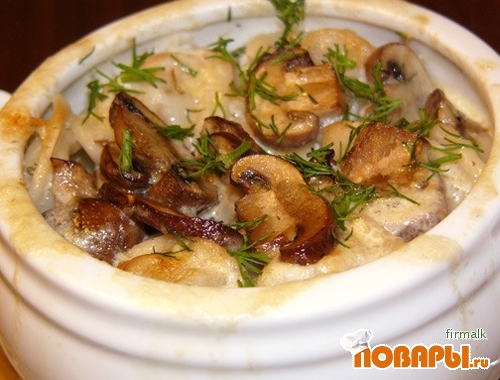 Поставьте горшочек со всем содержимым в предварительно разогретую до 180 С духовку и запекайте 10мин.