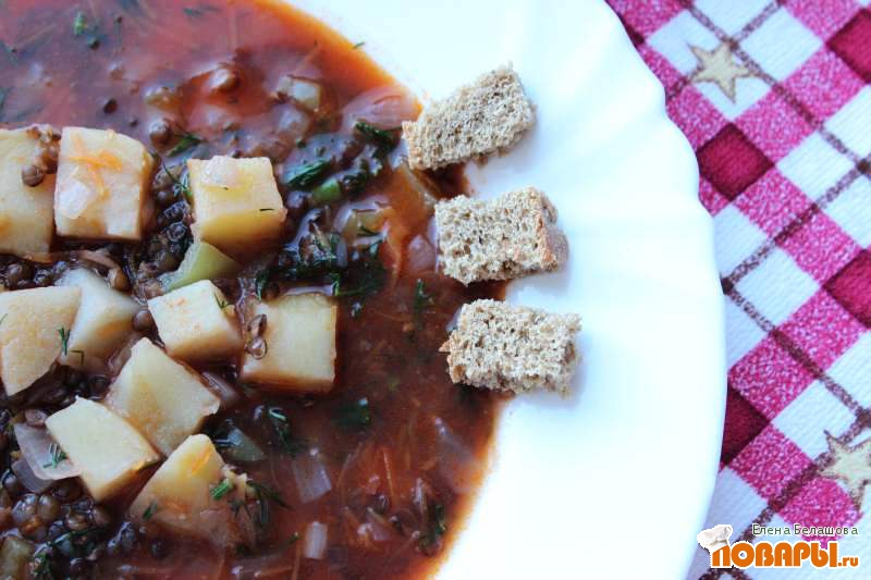 Густой суп с черной чечевицей и картофелем (постный)