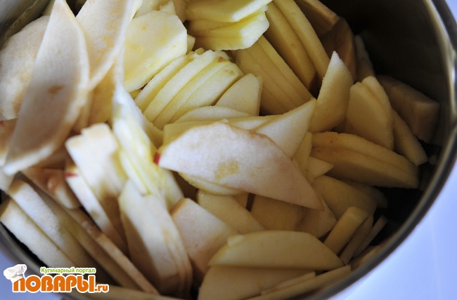 Выберите крахмальный сорт яблок. Яблоки отчистить от шкурки и других отходных частей. Порезать любой формы, так чтобы не очень толстые пластины были. Все это помещаем в кастрюльку и на газ, можно добавить немного воды. Варим около полу часа, яблоки к тому времени начнут размягчатся. Постоянно помешивайте.