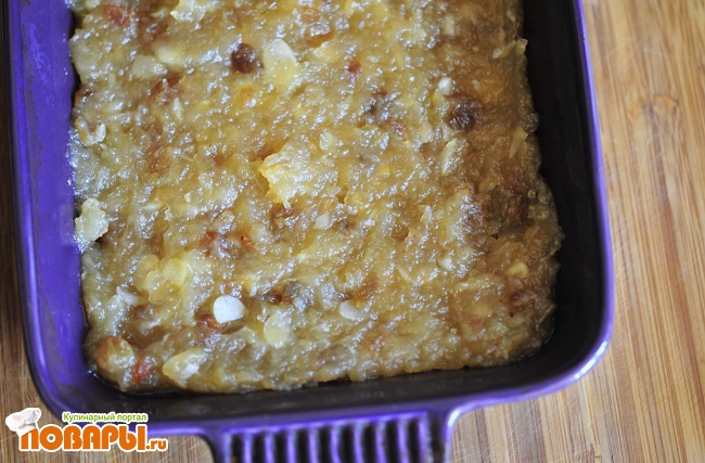 Заранее подготовьте изюм, промойте его, и немного подержите в теплой воде, чтобы он немного разбух. Изюм лучше взять очень сладкий и без косточек.