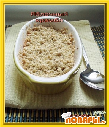 В форму выложить яблоки, сверху крошку и поставить в духовку на минут 35 или до появления золотистой корочки