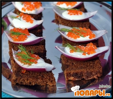 Икра форели на луковых лодочках