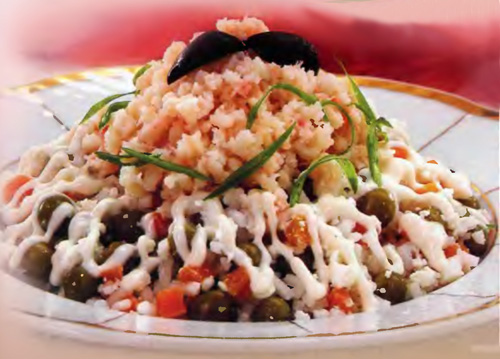 Полить смесью салат и слегка перемешать. Как гарнир положить нарезанные оливки.