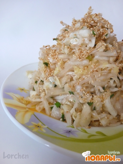 Растительное масло нагреть и залить салат. Хорошо перемешать.