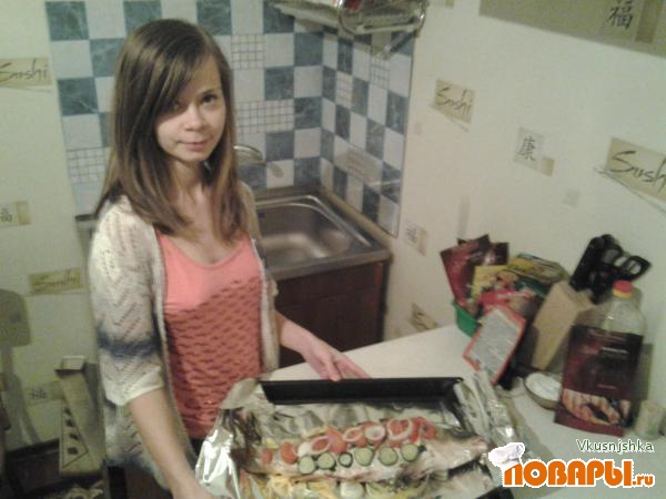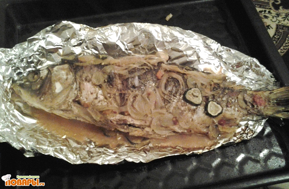 Карп, запеченный с овощами