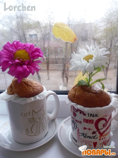Делаем в готовом кексе дырку, вставим туда кусочек коктейльной трубочки, а в трубочку - цветочек.