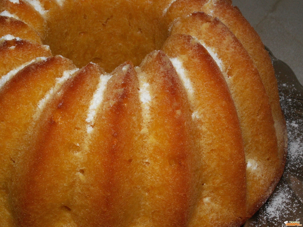 Кекс вынуть из формы, остудить и посыпать сахарной пудрой.