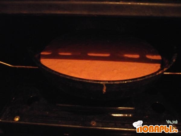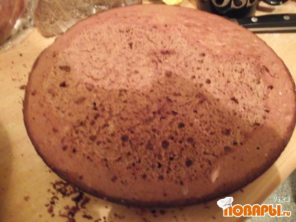 Кекс переверните срезанной стороной вниз и положите в форму в которой он выпекался или же в любую другую глубокую емкость.