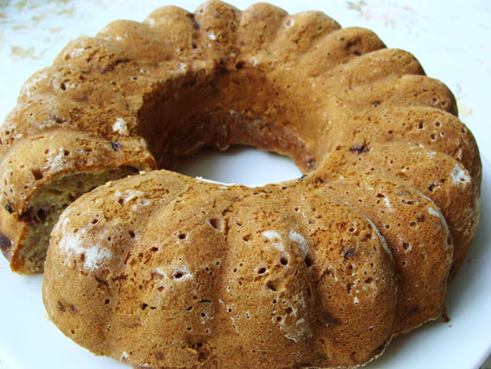 Сахар взбить с яйцами, добавить распущенный маргарин и молоко. Соду погасить уксусом и добавить к яичной смеси. Бананы раздавить вилкой до кашицы, очистить два яблока натереть на крупной терке.