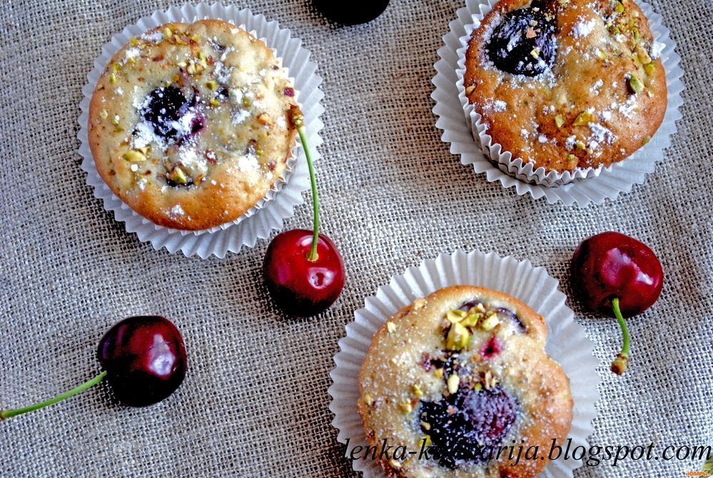 Кексы с вишней, яблоками и орехами