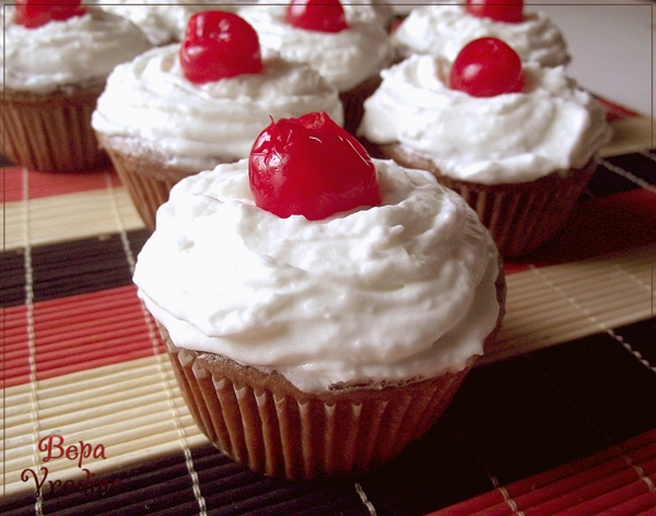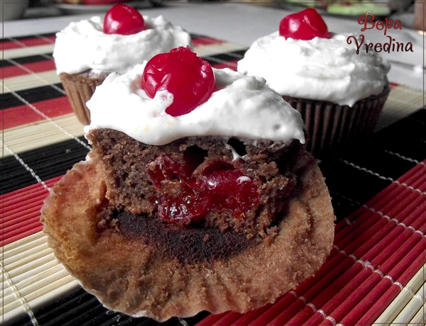 Кексы шоколадные с вишней в сахаре