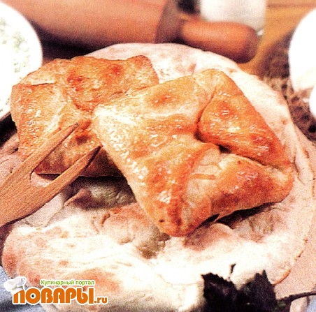 Готовое тесто разделить на лепешки, каждую из них раскатать в ровный пласт толщиной 0.5 см.