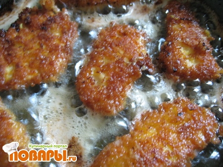 Сделать кляр: взбить яйца с солью и перцем. Я еще немного добавляю в него майонеза для пышности (можно пару ложек пива).
