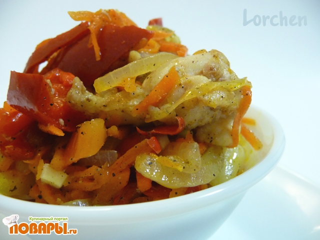 Добавить овощи к филе и жарить все до готовности.