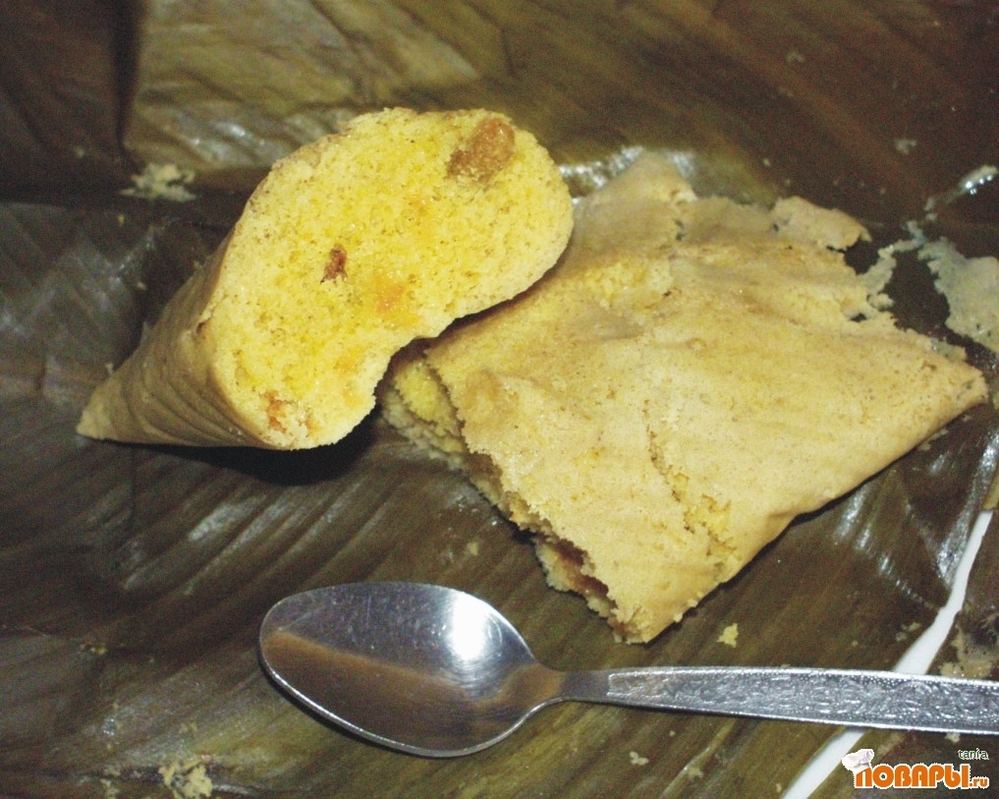 Кимболитос (кукурузные кексы в листках канн на пару)
