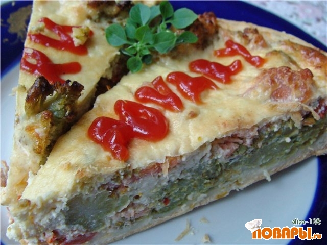 Киш (фр. quiche) — блюдо французской кухни. За основу берется киш лорен (фр. quiche lorraine, лотарингский пирог) — по французскому названию Лотарингии, откуда он пришёл во французскую кухню. Это соленый тарт (открытый пирог) с основой из рубленого теста, заливкой из смеси яиц, сливок/молока и сыра (первоначально грюйера), и с копченой грудинкой, нарезаной лардонами (тонкими брусочками). Существуют разные вариации киша, от "эльзасского киша" с обжареным луком, до всевозможных овощных, рыбных и мясных сочетаний. Материал из Википедии