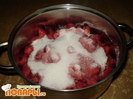 Когда сок станет густоватый в него добавить ягоды (которые хранились в холодильнике) и прокипятить пять - семь минут.