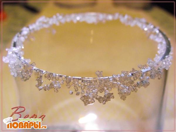 Окунуть горлышко бокала сперва в лимонный сок, потом в сахар.