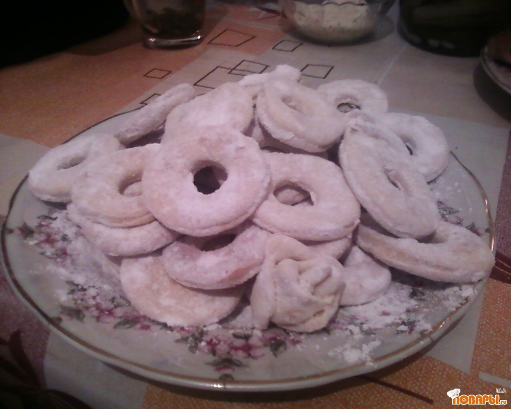 Выпекаем в духовке при 180 С. Надо внимательно следить, чтобы не пересушить, иначе будут твердыми. Когда выпеклись, сразу же горячими обваливаем в сахарной пудре.