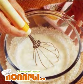 Охладите сливки в холодильнике минимум 2 часа: они должны иметь температуру 4 С. Перелейте сливки в холодную миску, опустите ее в большую миску, наполненную колотым льдом.