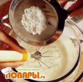 Когда сливки начнут густеть, добавьте сахар, просеивая его через ситечко. Закончите взбивать, когда сливки полностью загустеют.