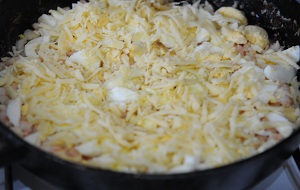 3) Сыр тертый- 3/4 стакана