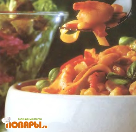 Светлое пиво весьма существенно влияет на вкус этого блюда из креветок и тальятелле (широкая плоская лапша). Вместо пива можно использовать рыбный бульон или белое вино. Тальятелле, феттучини или любые другие изделия наподобие лапши прекрасно сочетаются с креветками в соусе, приготовленном с кукурузными зернами и сладким перцем, вкусу которого пиво придает особую пикантность.