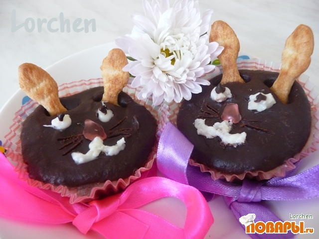 Шоколад измельчаем, заливаем сливками, отправляем на плиту. Помешивая, ждем, пока все превратится в однородную массу, выливаем на сливочный слой. Вставляем "уши". В холодильник - минимум на 6 часов. Это третий слой.