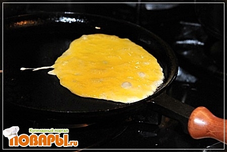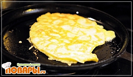 и вылить на раскаленную сковороду масляную- для этой процедуры я использовала блинную сковороду.