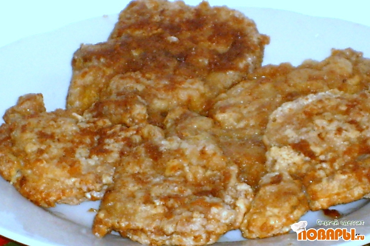Жарить можно на свином жире (топленное сало без шкварок или из сала вытопить жир и удалить шкварки). Можно применять и растительное масло. Тоже есть разница по вкусу. Этот раз делал на подсолнечном масле.