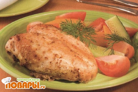 Уложите грудки на противень, слегка смазанный маслом, и жарьте в духовке до готовности.