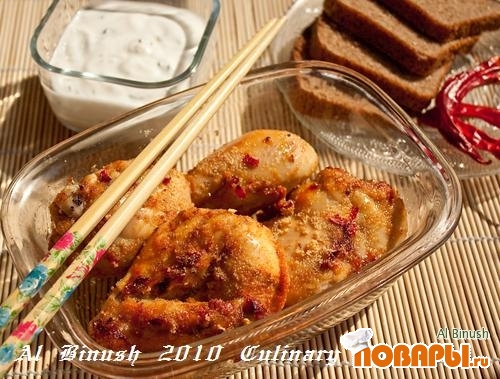 По мотивам рецепта КУРИНЫЕ БЕДРЫШКИ С ОСТРЫМ ПЕРЦЕМ И МЕДОМ из Книги гастронома. Про птицу.