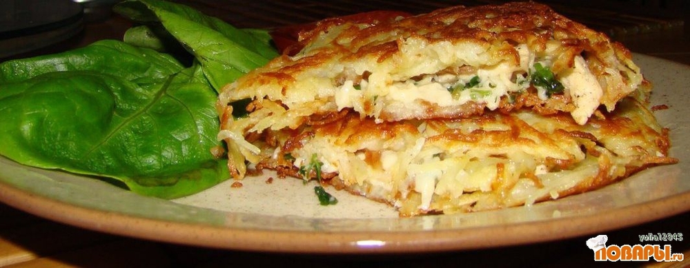 Свободной стороной картофельного блина накрываем курицу с сыром. По минутке на каждой стороне обжариваем. Приятного аппетита!!!))))