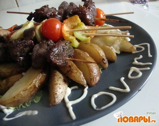 Шашлыком это блюдо назвать язык не поворачивается у меня, потому что мясо, которое приготовленное не на костре это не шашлык. Первый раз такое готовила, из принципа не смотрела в инете как его готовят, так что рецепт оригинальный.