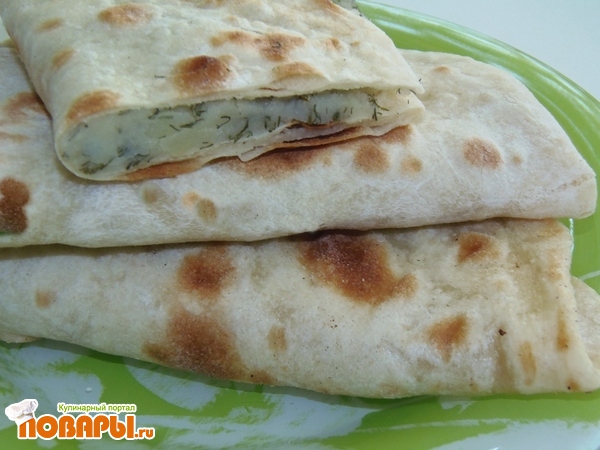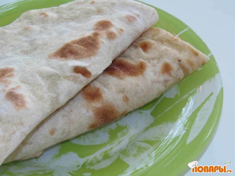 Замешиваем тесто, даем ему немножко полежать, затем режем кусочками и раскатываем лепешки. Поджариваем лепешки на сухой и прогретой заранее сковороде с двух сторон.